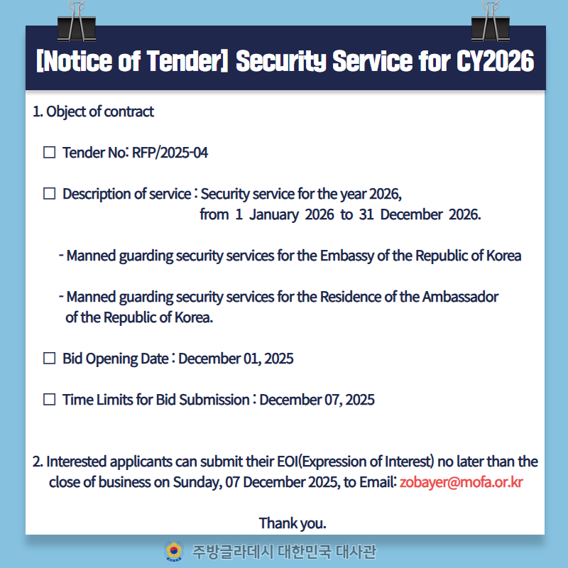 - Manned guarding security services for the Embassy of the Republic of Korea