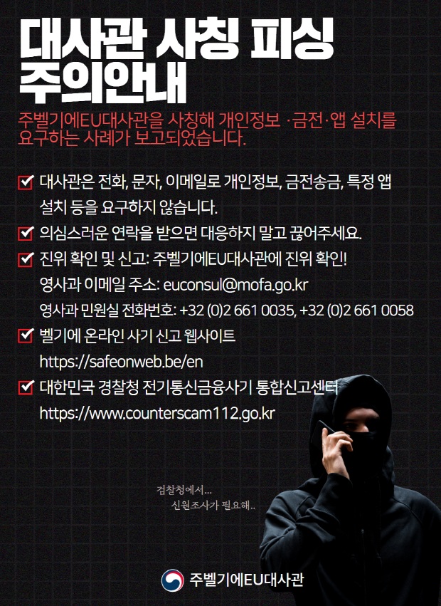 재외국민보호 안전공지 - 61 (주벨기에유럽연합대사관 사칭 보이스피싱 주의 안내 )