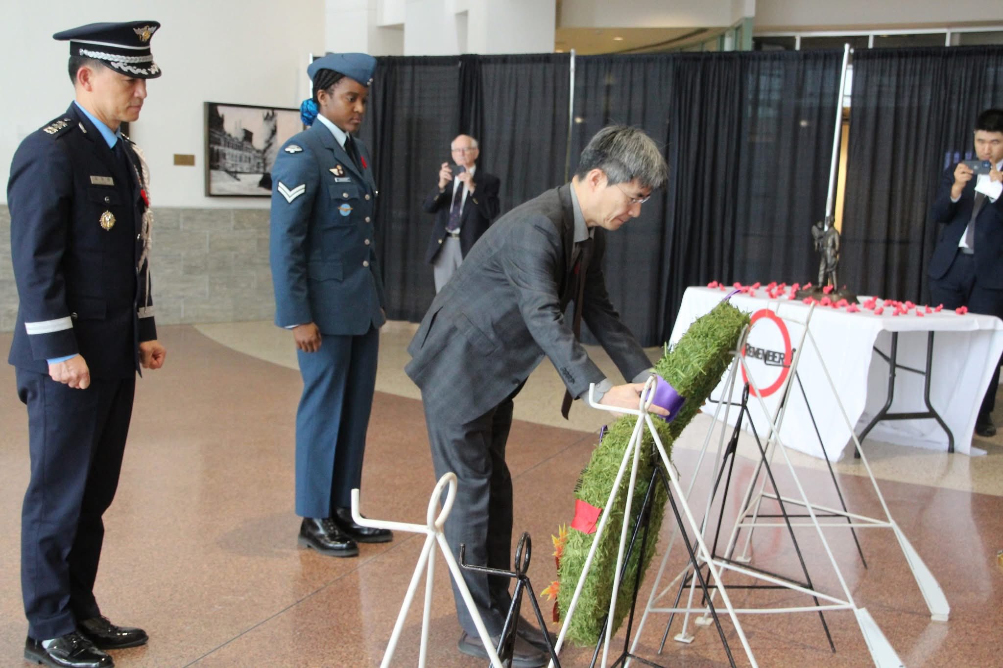 2025년 11월 9일, 주캐나다대한민국대사관 국방무관실은 오타와 시청에서 “턴투 부산(Turn to Busan)” 헌화식을 거행하였습니다. 이번 행사에는 안영기공사와 캐나다를 대표해 래리머리 전,국회의원, 연아마틴 상원의원, 제이슨 암스트롱 소장을 비롯하여 캐나다 보훈부, 캐나다군 관계자 및 6명의 한국전 참전용사 등 100여 명이 참석하여 한국전쟁 참전용사들의 희생과 헌신에 깊은 감사와 경의를 표하였습니다. 🇰🇷🇨🇦