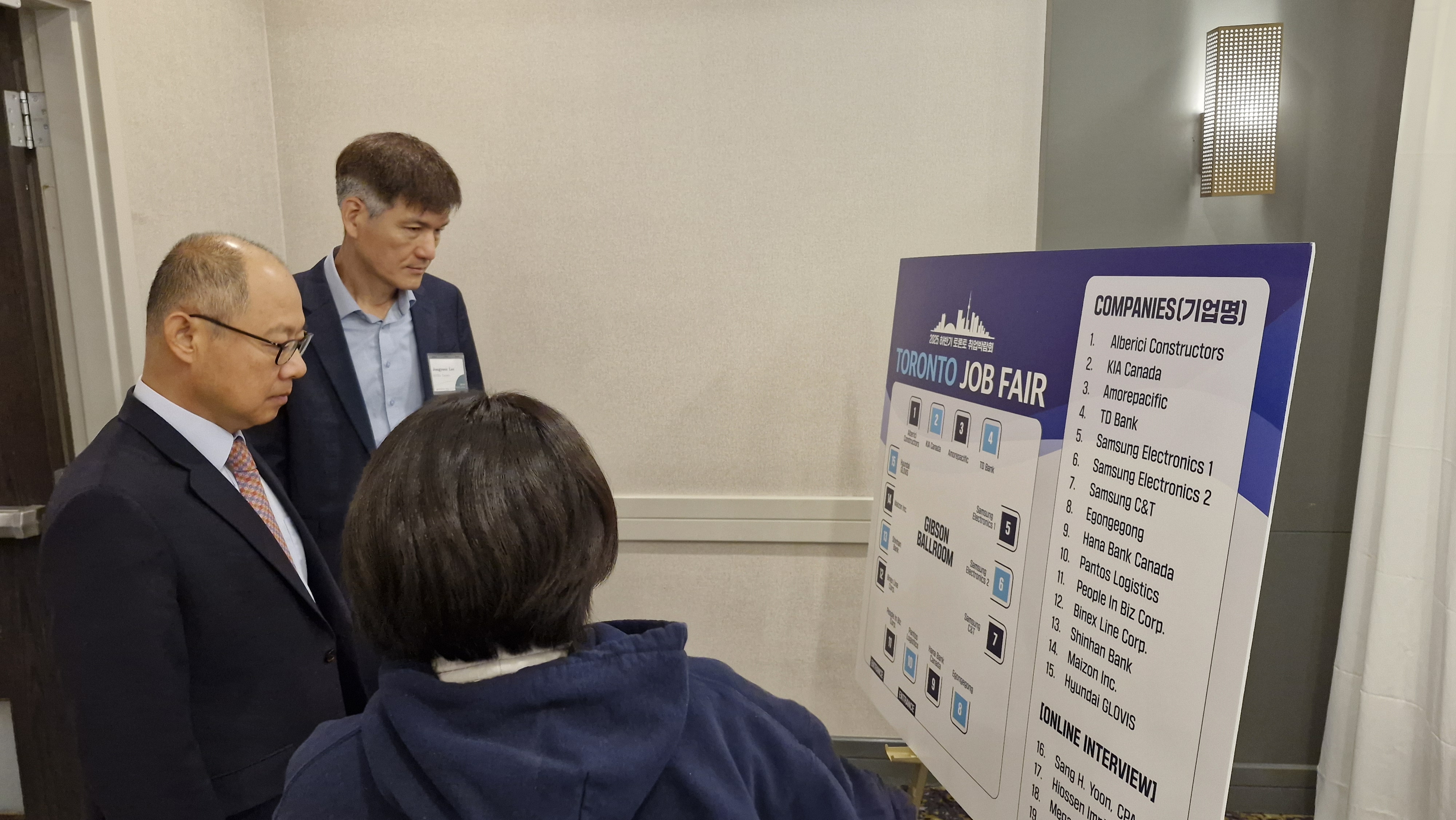 10.1(수) 주토론토총영사관은 코트라 토론토무역관과 함께 2025년 하반기 토론토 취업상담회를 개최하였습니다. 19개의 구인 기업과 130여명의 구직 청년들이 참석한 가운데 1:1 취업 면접, 1:1 커리어 코칭 멘토링을 실시하고, 구인 기업들에게 캐나다 취업 시장 동향을 설명하는 간담회도 가졌습니다. 이번 취업상담회를 통해 역량있는 한인 청년들이 양질의 일자리를 찾고, 또 구인 기업들은 필요한 인재를 적재적소에 기용하는 성과가 있기를 기대합니다. 끝.