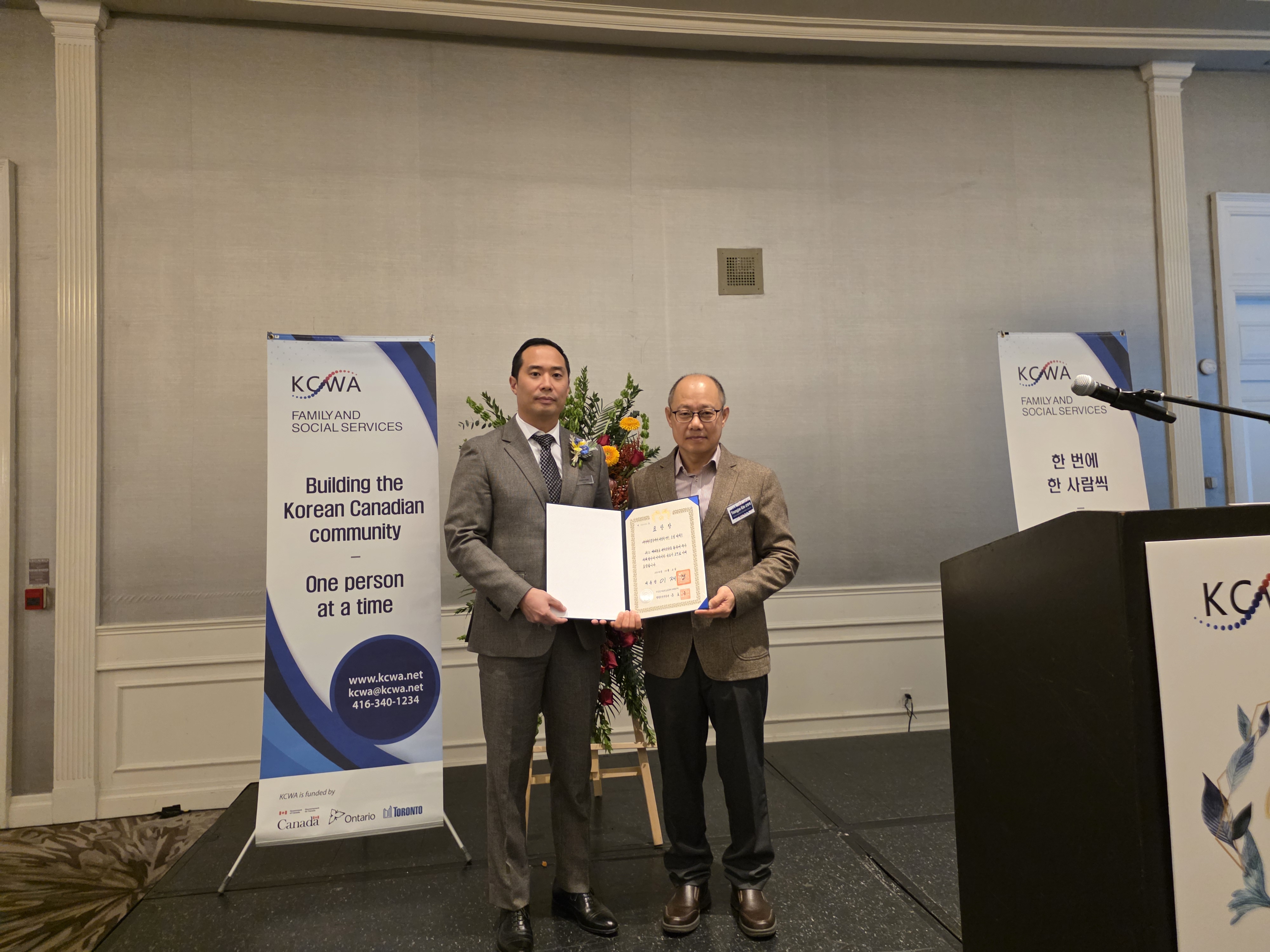 김영재 총영사는 10.25(토) KCWA(회장 Joseph Park)에서 주최한 'KCWA 창립 40주년 기념식'에 참석하여 한인사회의 권익신장을 위해 헌신하며 공동체의 지속가능한 발전을 다져온 KCWA에 대해 사의를 표명하였습니다. 또한, 동 행사 계기에 제19회 세계 한인의 날 유공 포상에서 대통령 표창을 받은 KCWA에 표창장을 전수하여 그간의 노력과 성과를 기념한 바 있습니다.