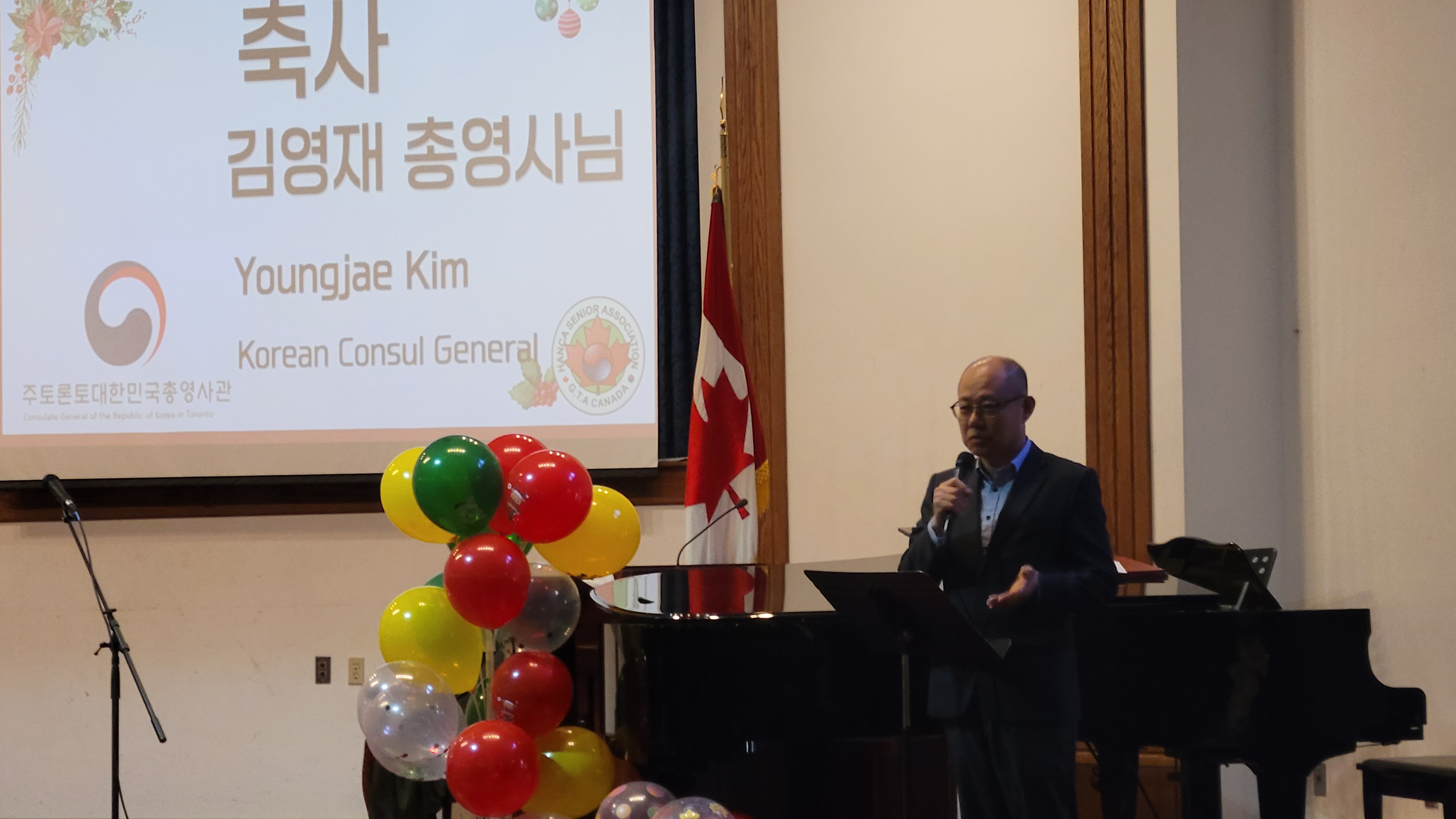 김영재 총영사는 12.18(목) 한카사니어협회(회장 김원미) 주최 송년회에 참석하여 회원 및 관계자들을 격려하고 축하의 뜻을 전하였습니다. 총영사는 축사를 통해 협회가 앞으로도 더욱 활기차게 성장해 나가기를 기대하며, 회원 여러분의 건강과 행복을 기원하는 뜻을 전하였습니다.
