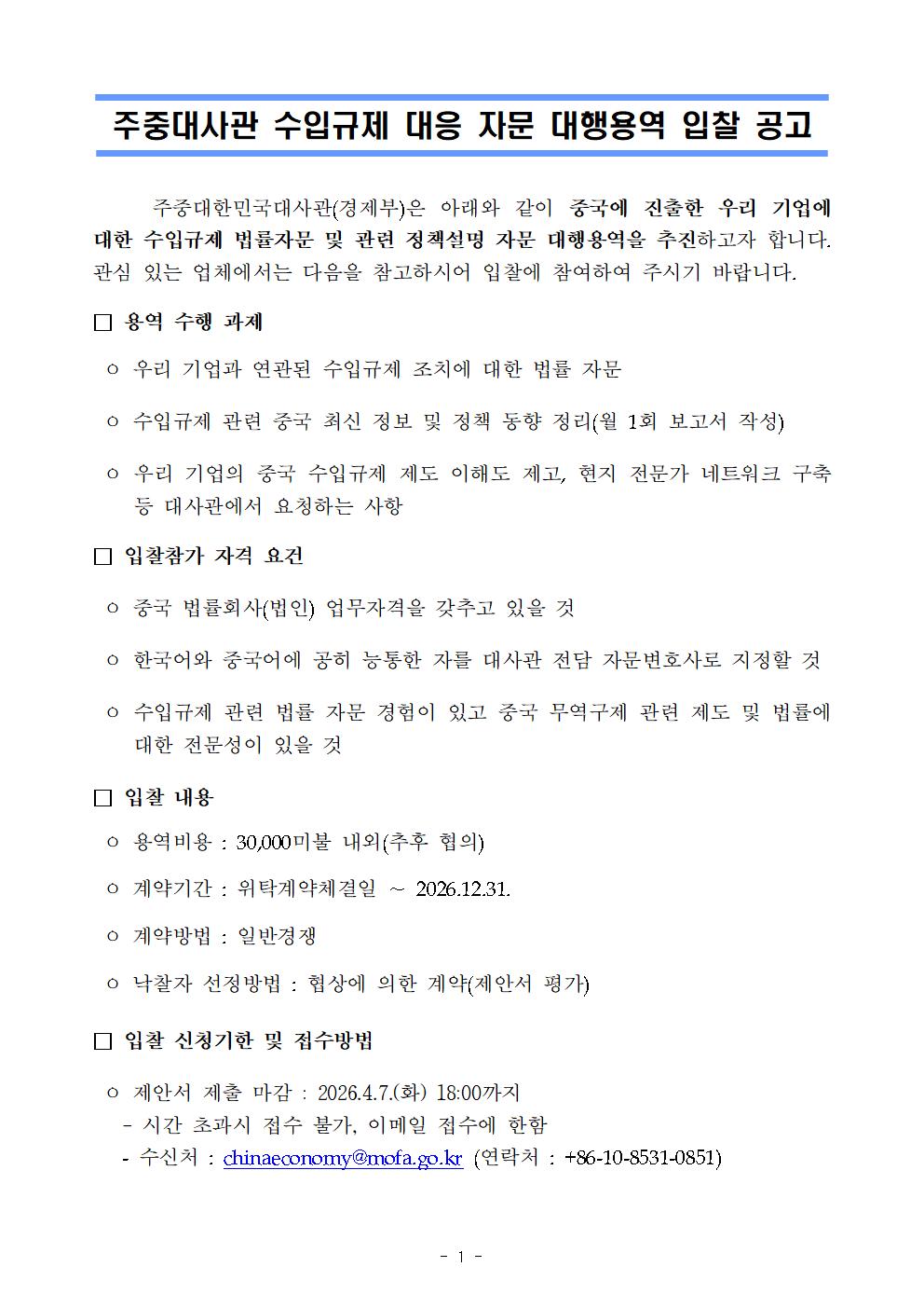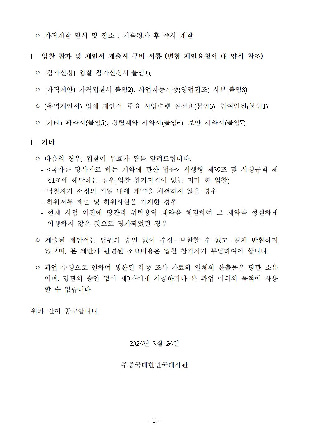 붙임2 주중국대사관 제안요청서(2026 수입규제 사전대응체제 구축).hwp