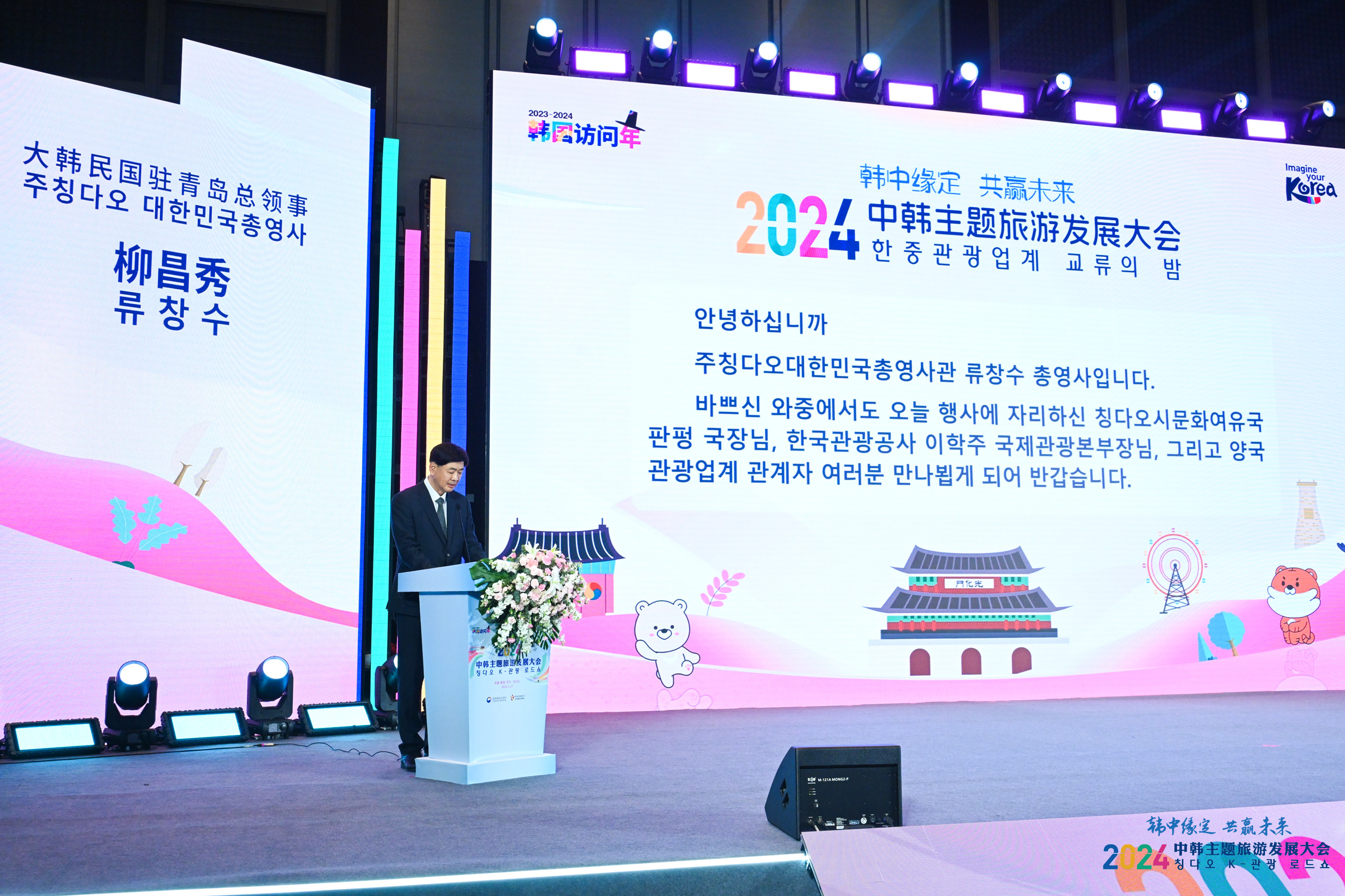 3月27日(周三),柳昌秀总领事出席由韩国文化体育观光部主办、韩国旅游发展局承办的2024中韩主题旅游发展大会。 在大会上,柳总领事发表致辞,祝贺本次活动成功举办并强调了旅游业的重要性。同时表示总领事馆将以开馆30周年为契机,充分发挥我馆在加强公共外交与地方政府间交流的推动作用,与旅游业领域的相关机构携同合作,为活跃两国间的人文交流而不断努力。