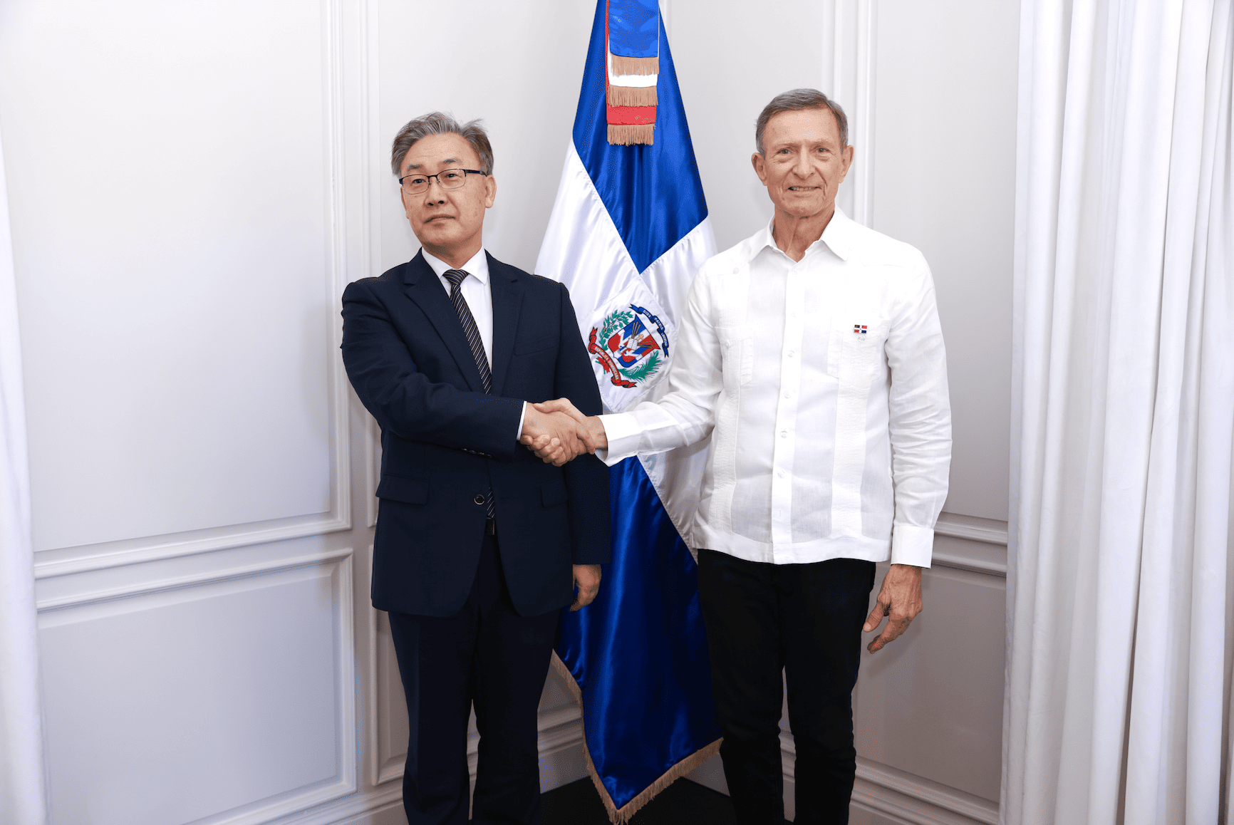 El 18 de diciembre, el Embajador de la República de Corea, Sr. Sang Ryul Lee, realizó una visita de despedida al Ministro de Relaciones Exteriores, Sr. Álvarez. Durante el encuentro, el Canciller Álvarez expresó su agradecimiento por los esfuerzos y la dedicación del Embajador Lee en favor del fortalecimiento de las relaciones bilaterales. Asimismo, ambas partes intercambiaron opiniones sobre las perspectivas y el desarrollo futuro de las relaciones entre la República de Corea y la República Dominicana.