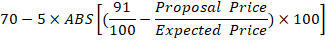 If the proposal Price is between 100% and 94% of the expected price, 55 points. And the lowest is 2 point. | 70 |
