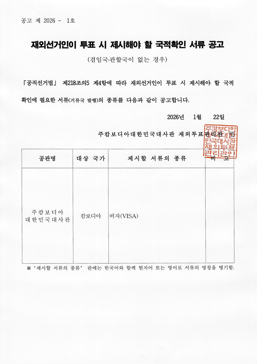 재외선거인이 투표시 제출해야 할 국적확인 서류 공고