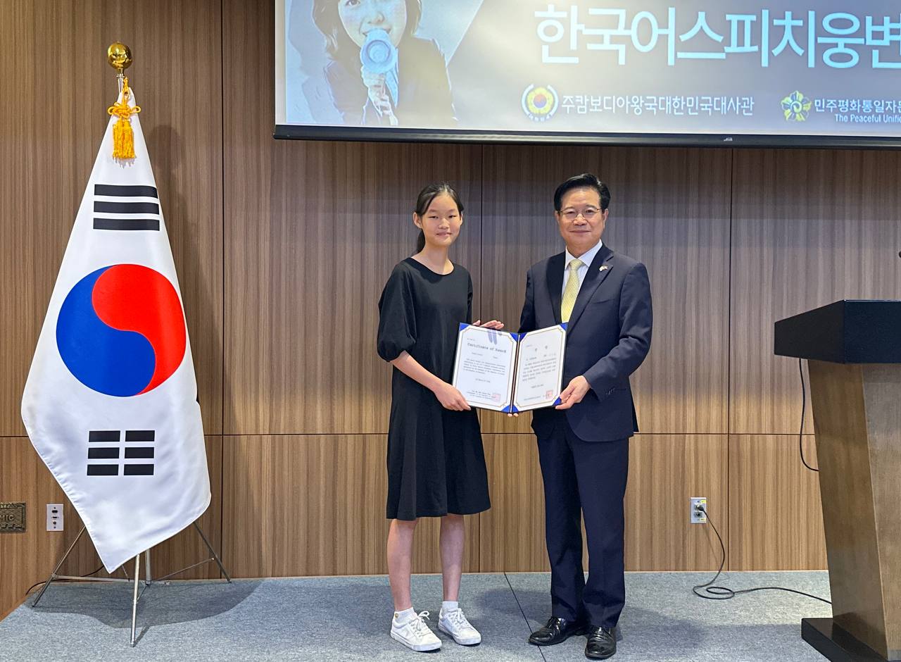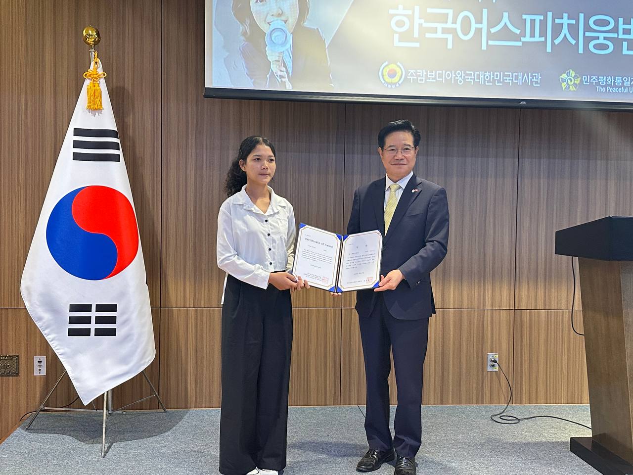 김창룡 대사는 3.27(금) 주캄보디아대한민국대사관에서 열린 제14회 캄보디아 한국어 스피치 웅변대회에 참석해 참가자들을 격려하고 우수 참가자들에게 상장을 수여하였습니다.