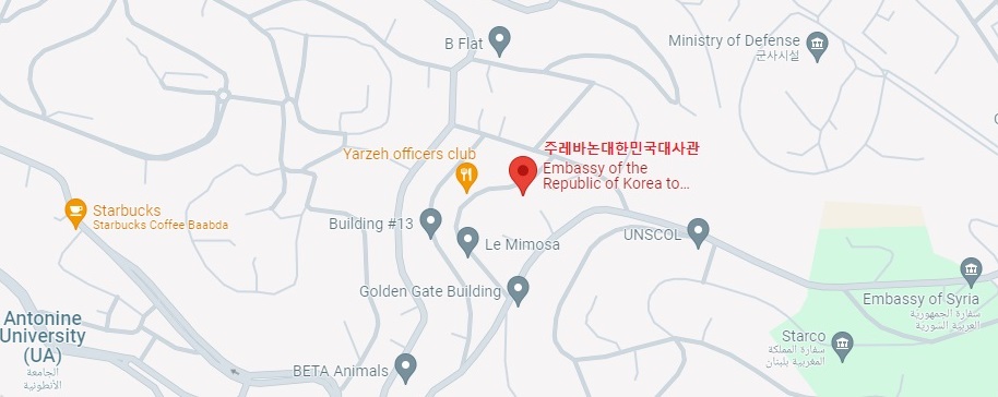 Embassy of the Republic of Korea, Nadim Munlabldg. Officers Club street-Yarzeh-Baabd