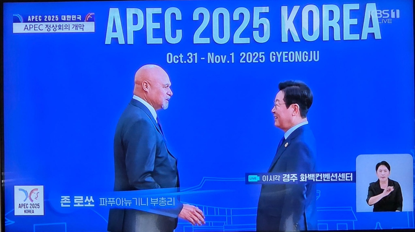 파푸아뉴기니 부총리 존 로쏘는 경주에서 10.31 - 11.1간 열리는 APEC 2025에 참석하여 이재명 대통령과 만남을 가졌습니다.