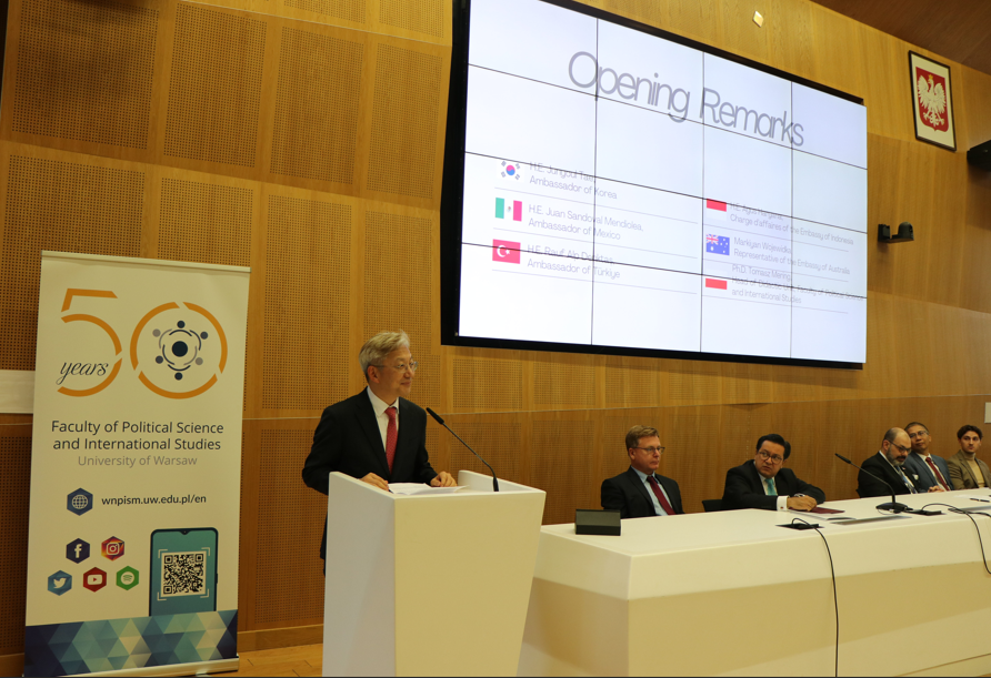 우리 대사관은 2025년 유엔 창설 80주년을 기념하고, 올해 MIKTA 의장국으로서 한국의 중점의제 중 '청년의 참여'를 실현하기 위해 '유엔의 날'인 10월 24일, 바르샤바 대학교 정치외교학부와 함께 '다자주의의 미래'를 주제로 하는 MUN을 개최하였습니다.
