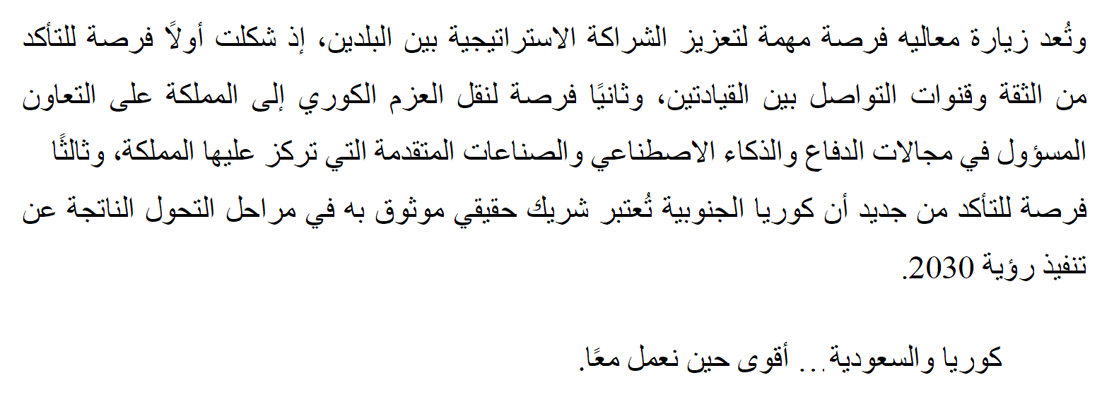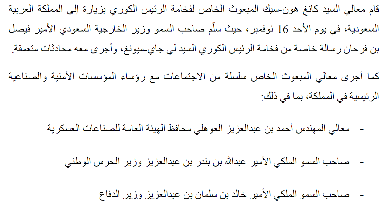 المبعوث الخاص للرئيس الكوري يزور المملكة العربية السعودية