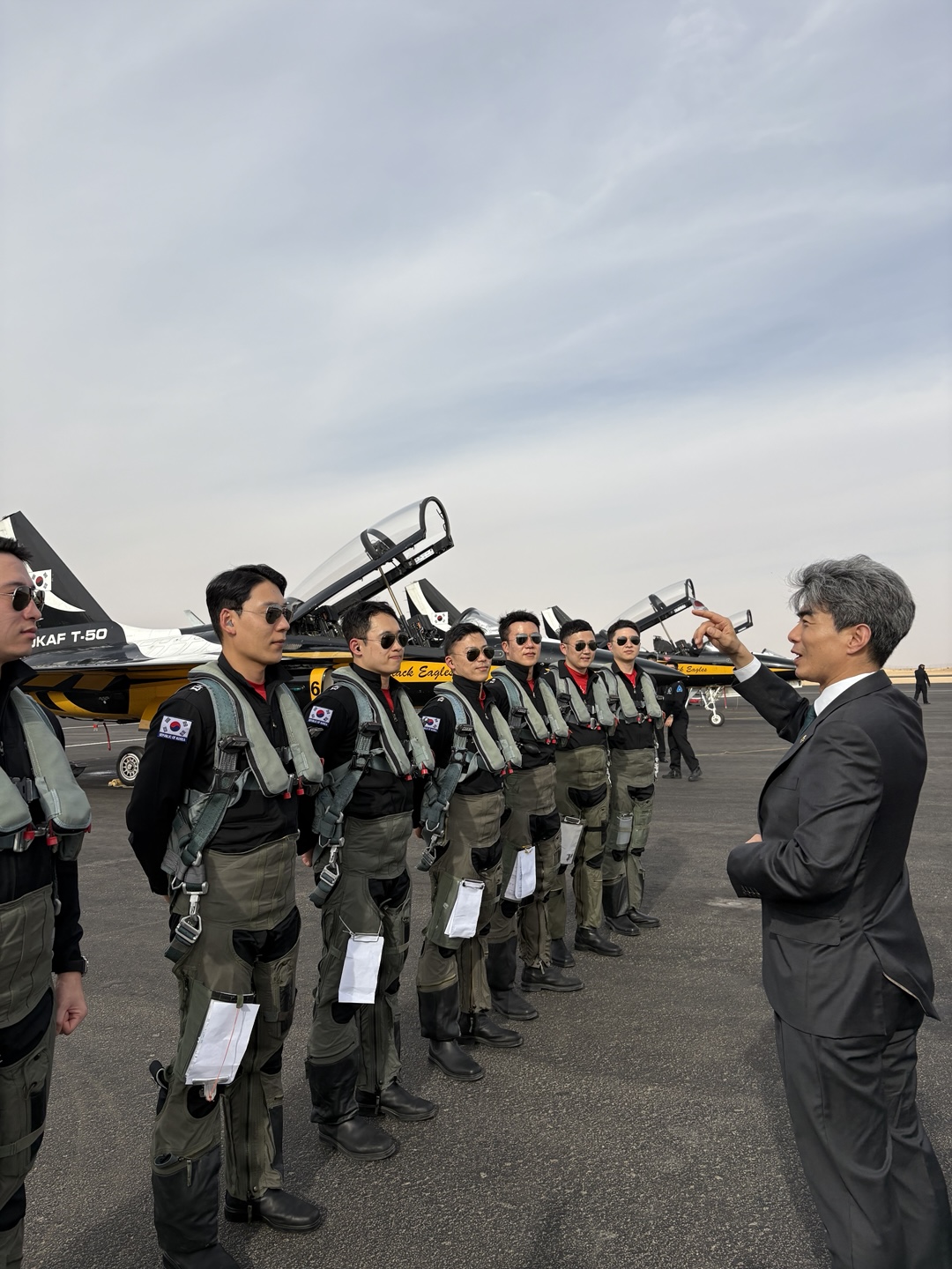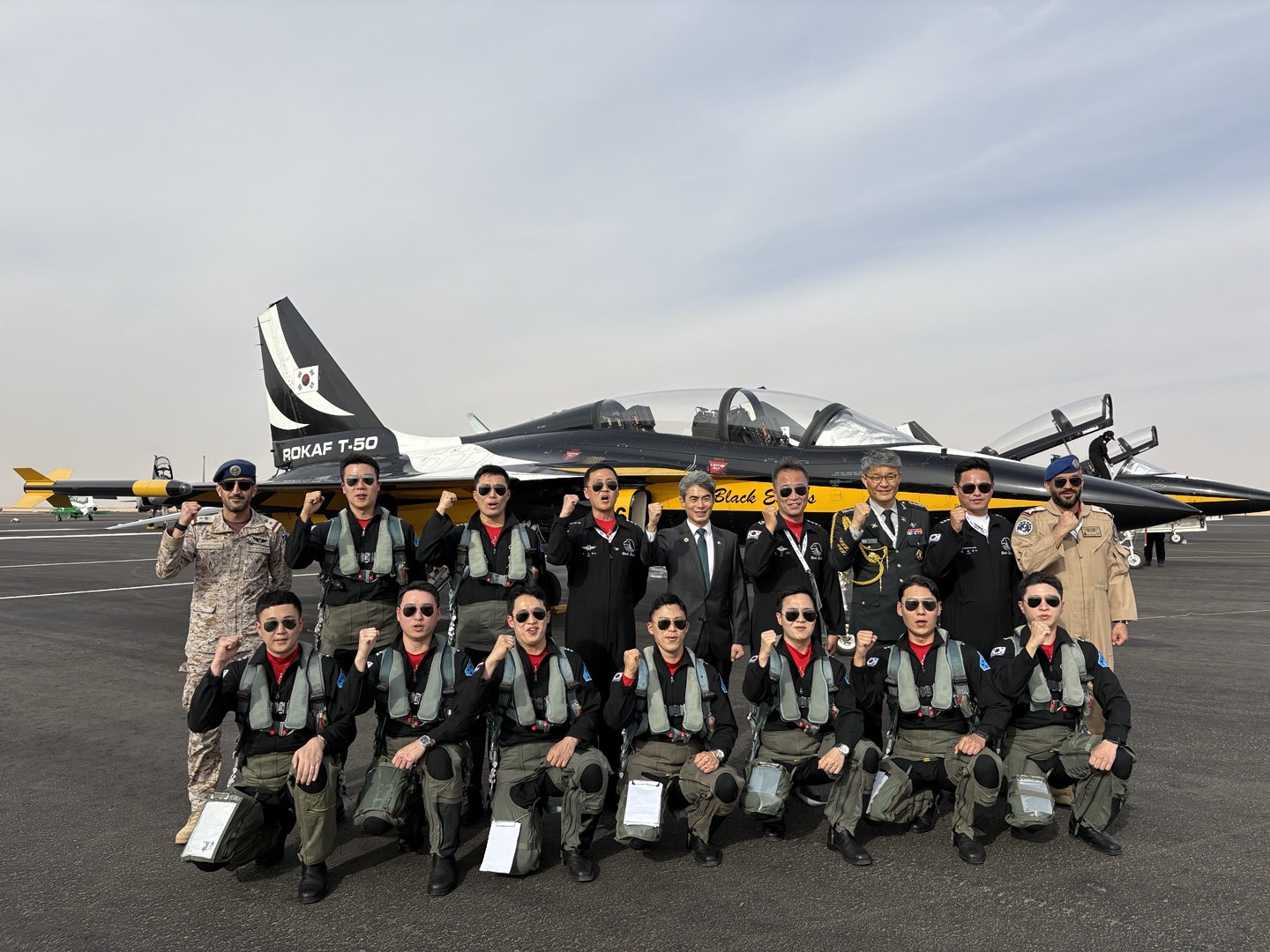 강신철 대사는 2.10(화) 제3회 World Defense Show에 참여한 블랙이글스 특수비행전대의 비행공연(Air Show)를 관람하고 전대원들을 격려하였습니다.