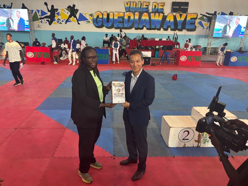 Il a prononcé un discours de félicitations saluant les efforts de la Fédération Sénégalaise de Taekwondo pour la promotion du Taekwondo et sa diffusion au Sénégal. Il a également assisté à la finale de la compétition de Taekwondo et a remis des médailles ainsi que des équipements de Taekwondo aux vainqueurs.
