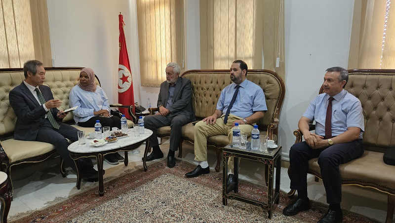 L’Ambassadeur Sun Nahmkook a visité, le jeudi 1er août, l’Université Zitouna et rencontré respectivement Monsieur Abdellatif Bouazizi, le président, Monsieur Mohamed Rezgui, le premier vice-président et Monsieur Rachid Tabbakh, le deuxième vice-président de l’université. Ils ont discuté de la formation et des études des étudiants coréens au sein de l’université ainsi que des mesures d’échanges académiques avec les universités coréennes. Par ailleurs, l’Ambassadeur Sun a eu l’occasion de visiter la bibliothèque et les installations de l’université.
