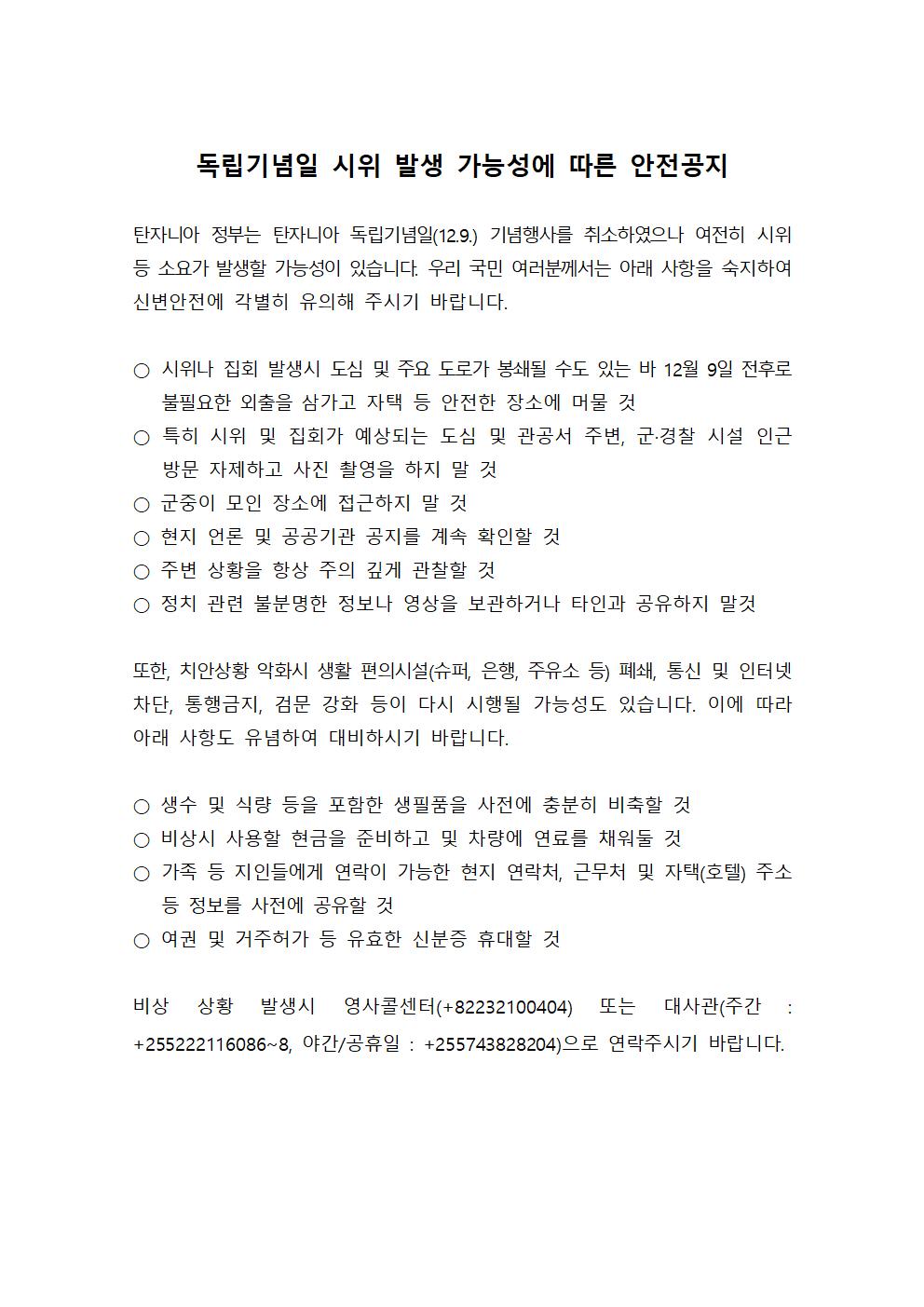 독립기념일 시위 발생 가능성에 따른 안전공지