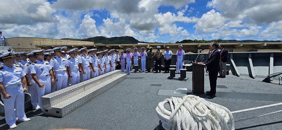 김천영 출장소장은 입항환영행사와 함상리셉션을 통해 우리 해군 순항훈련전단을 환영하고, 해군사관생도를 격려하였습니다.