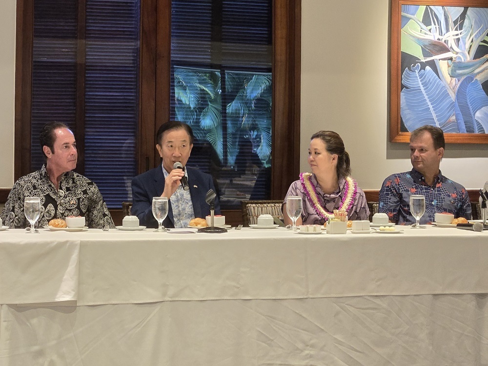이서영 총영사는  2025년 6월 17일 퍼시픽 클럽에서 하와이 영사단(Consular Corps Hawaii) 주최로 열린, 질 도쿠다(Jill Tokuda) 연방하원의원 조찬 강연에 참석하였습니다. 이날 행사에는 호주총영사, 일본총영사, 필리핀총영사 및 각국 명예영사, 하와이대학, 동서 센터 등 각계 인사들이 참석하였으며, 트럼프 행정부의 이민정책 및 외교·안보 이슈에 관해 다양한 의견을 교환했습니다.