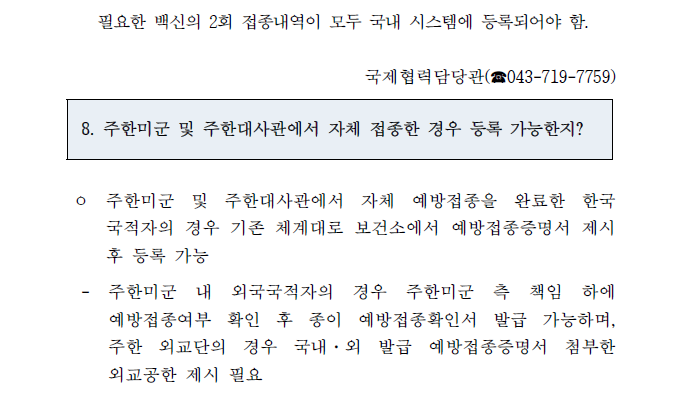 - 주한미군 책임 하 접종내역 확인 → 종이확인서 발급