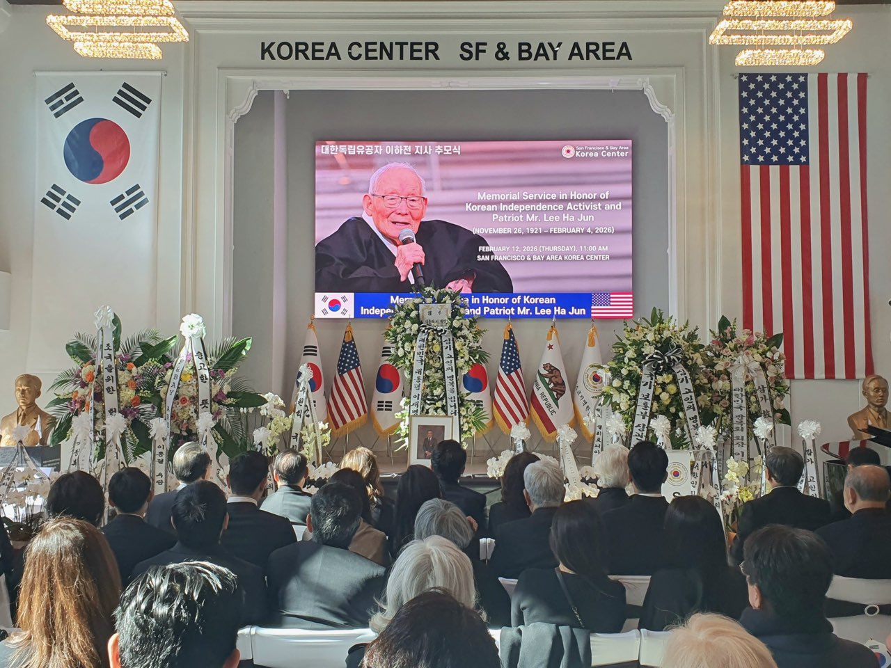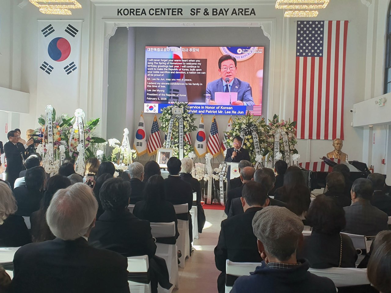 임정택 총영사는 2.12(목) 샌프란시스코한인회 등 북가주 한인단체가 주최한 이하전 애국지사 추모식에 참석하여, 이재명 대통령의 추모사를 대독하였습니다. 이하전 지사는 항일 독립운동을 펼치다가 일제에 의해 검거되어 2년 6개월의 옥고(1990년 대한민국 정부는 건국훈장 애족장 수여)를 치뤘고, 미국으로 건너 오셔서 광복회 미서북부지회를 창설하는 등 애국-애족운동에 헌신하시다가 2026년 2월 4일 104세를 일기로 별세하셨습니다.