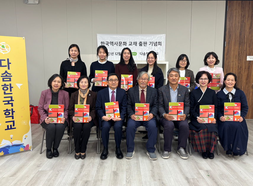 나상덕 부총영사는 2025.12.13.(토) 다솜한국학교에서 개최된 역사문화 교재 출판 기념식에 참석하였습니다. 다솜한국학교는 11번 째 한국 역사문화 교재로 이번에 <K-Culture로 배우는 한국 역사문화>라는 교재를 출판하였습니다. 나상덕 부총영사는 최근 전 세계적인 신드롬을 일으키고 있는 우리 문화를 통해 역사를 배울 수 있어 학생들이 흥미롭게 다가갈 수 있을 것으로 본다고 하고, 교재 출판을 위해 수고하신 선생님들의 노고에 감사를 전했습니다.