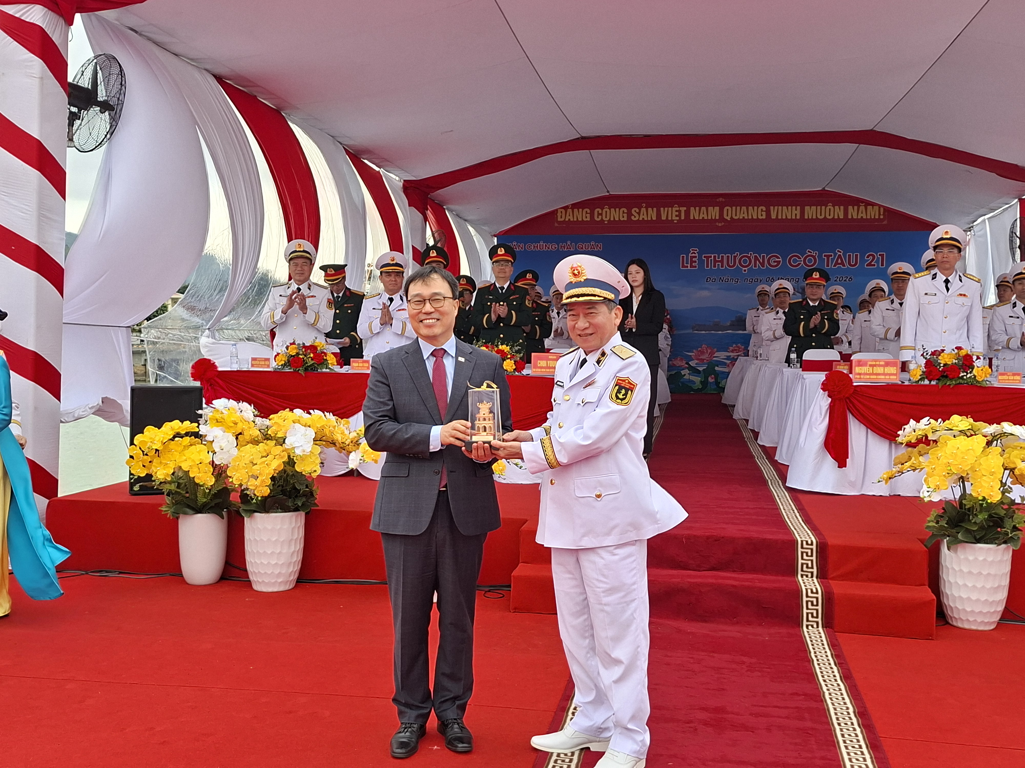 2026년 1월 6일, 다낭에 위치한 베트남 해군 제3해역사령부에서 한국 해군이 베트남 해군에 양도한 제천함의 베트남 해군 함정 21호 명명식이 최영삼 주베트남 대한민국 대사와 박정환 국방무관이 참석한 가운데 개최되었습니다.