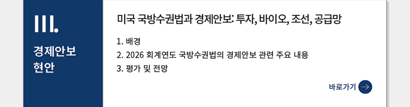 경제안보 Review 26-1호(2025 미국 국가안보전략서, EU 경제안보 강화 문서, 2026 미국 국방수권법)