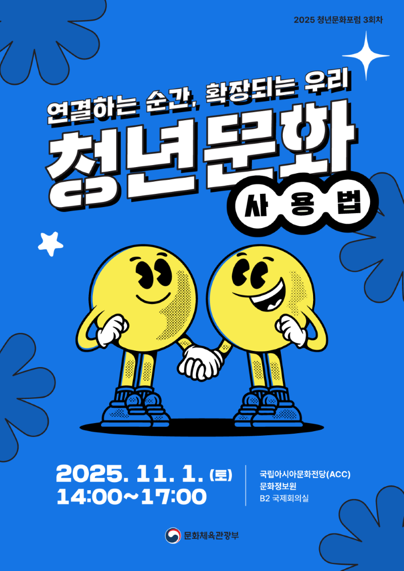 문화체육관광부에서는 청년인식 파악 및 의견수렴을 통한 청년 주도의 문화정책 기반 마련을 위해 다음과 같이 '2025 청년문화포럼'을 추진하고 있습니다.